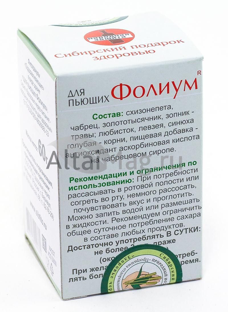 • Купите Фолиум 60 г в Красноярске по доступной цене 279 ₽ с доставкой на дом или заберите Ваш заказ в Красноярске из ближайшего пункта выдачи, сделав заказ на AltaiMag.ru.